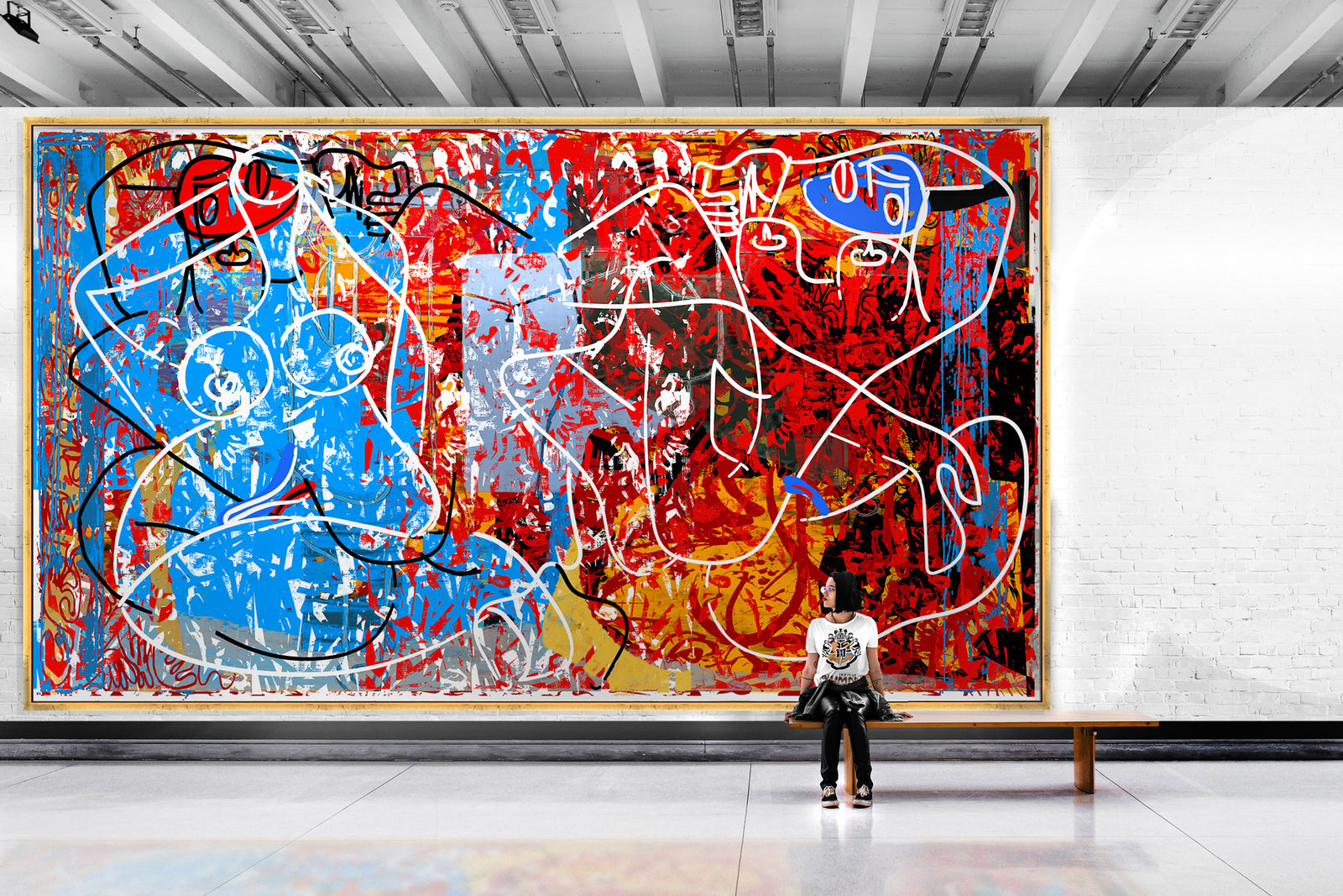 100 x 176in (245 x 447cm) | Oil, oil stick, military and industrial enamels on paper on Belgian linen